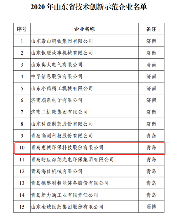 日,经山东省工信厅认定,我公司成功入选2020年山东省技术创新示范企业。