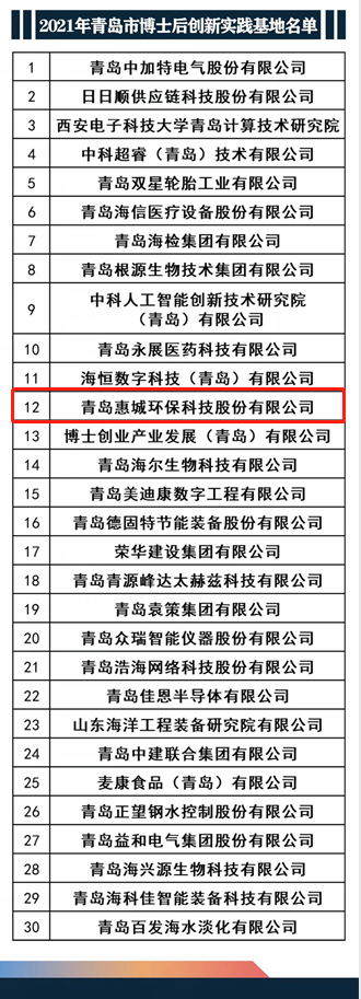 捷报频传!公司被认定为青岛市2021年博士后创新实践基地
