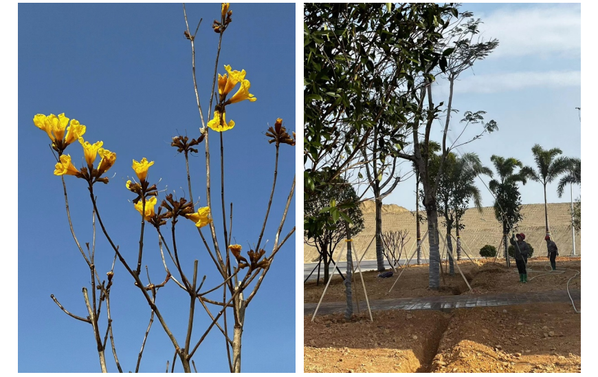 2023年3月12日,东粤环保的生产区域焕然一新。生产楼大门前的狐尾椰子树,摇曳生姿,独领风骚;一旁的桂花树,沉静内敛,毫不逊色;与其相陪衬的还有灰莉球、黄金叶球等,象征着朴素自然、清洁纯净。最引人瞩目的莫过于黄花风铃木,黄色的花蕾映照绿树婆娑的身影,更显生机活力,象征感恩的寓意。